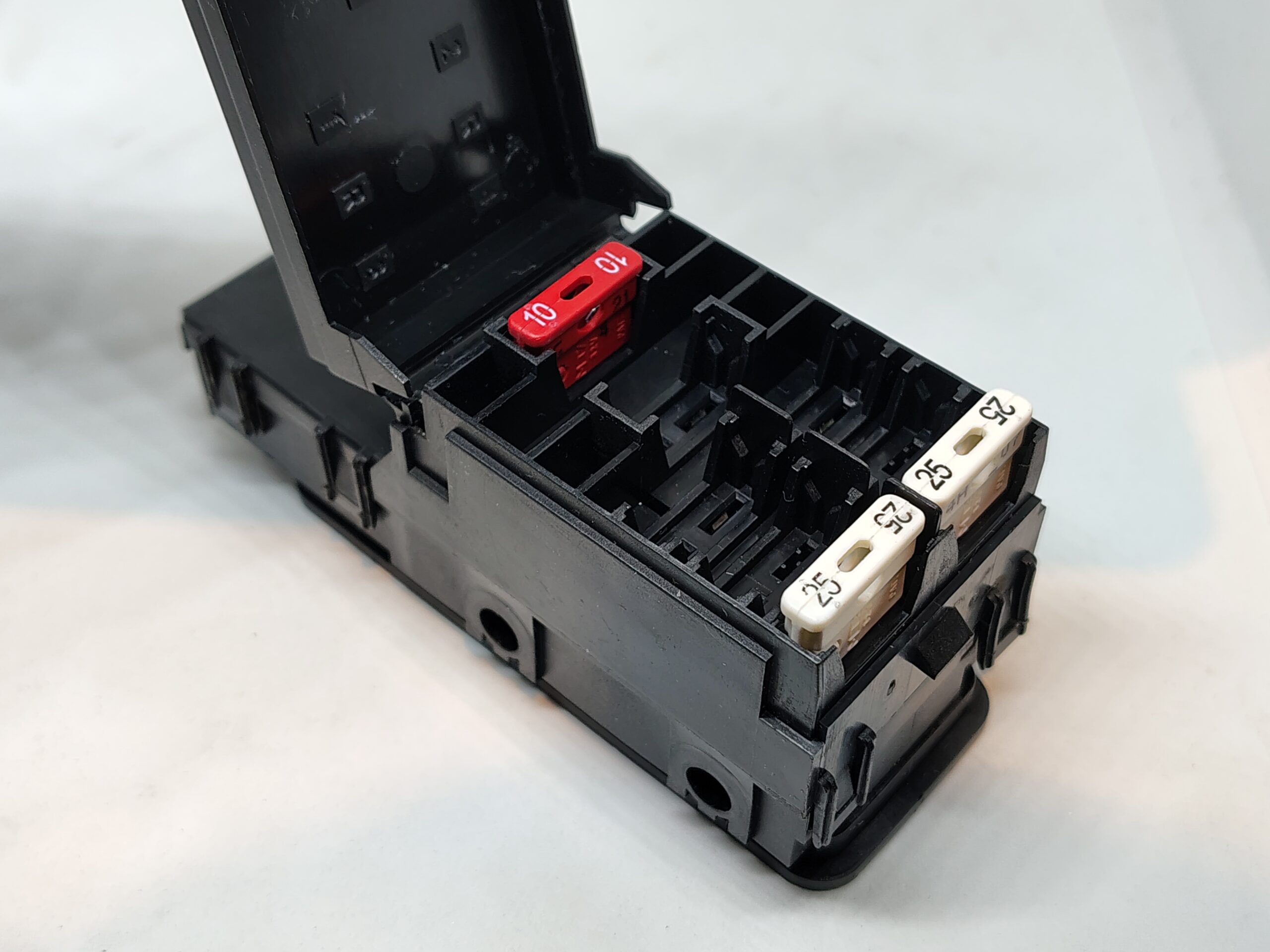Volledig gereinigd gebruikt zekeringkastje/verdeelkast tbv de hoofdstroomkabel van de Peugeot 205.